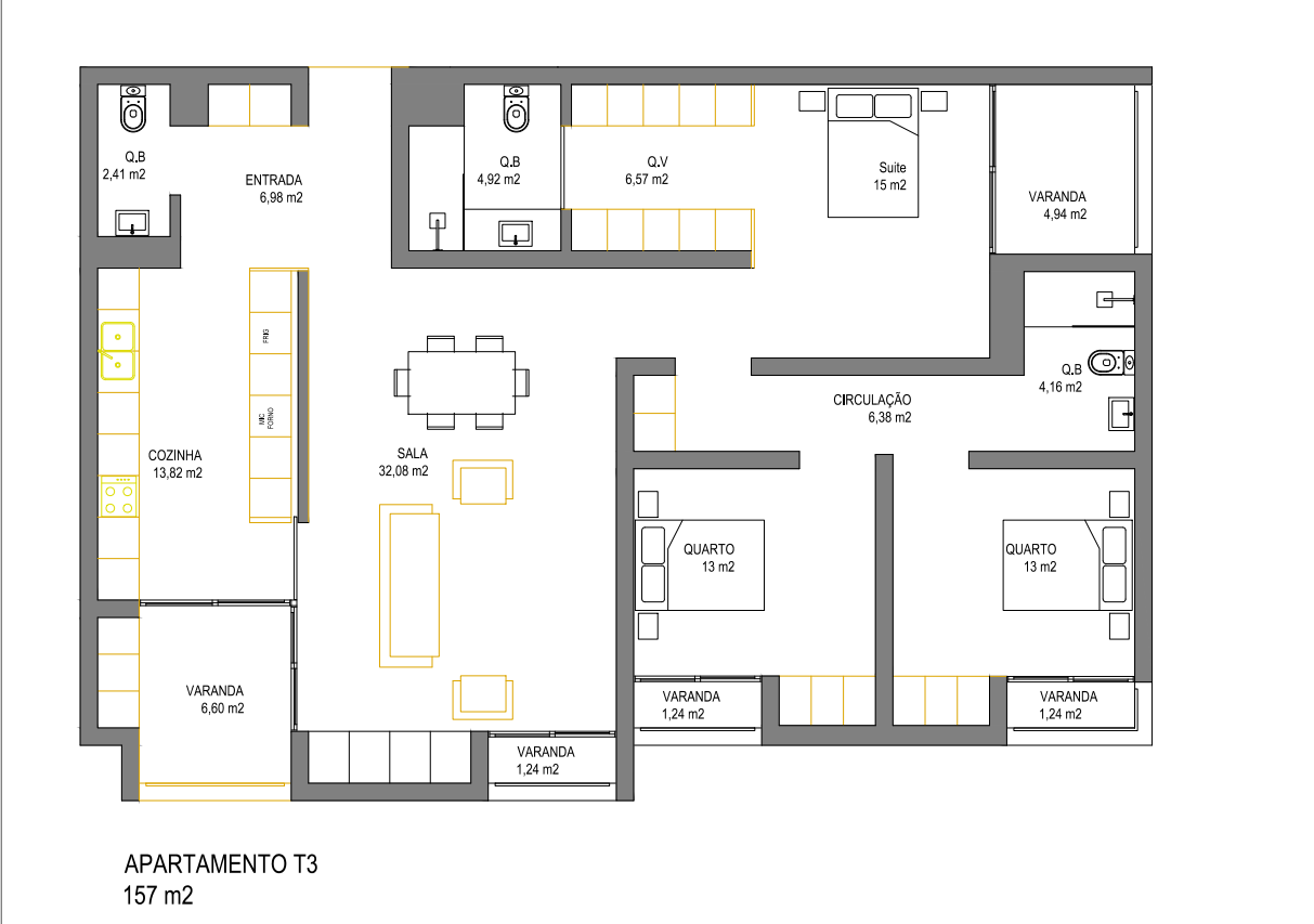 Le bien se compose d’un salon spacieux, d’une cuisine fonctionnelle, de deux chambres confortables, ainsi que d’une suite parentale avec sa salle de bain privée. L’appartement dispose également de cinq balcons, offrant une ventilation exceptionnelle, une luminosité optimale et un confort rare sur le marché.